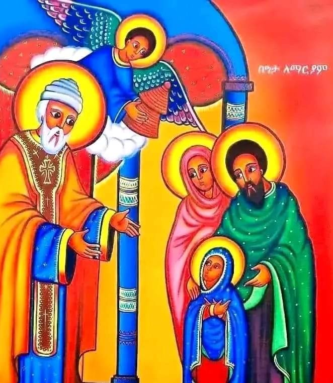 The Holy Virgin Mary was born from her mother, Saint Hanna, and her father, Saint Jacob on May 9th. The Entrance of Saint Mary into the Temple at Jerusalem is celebrated on December 12. On this day our church <<Beata Lemariam>> celebrates and commemorate the entrance of our holy Lady, the Virgin, Saint Mary, the Mother of God, into the Temple when she was three years old, for she was dedicated to God.